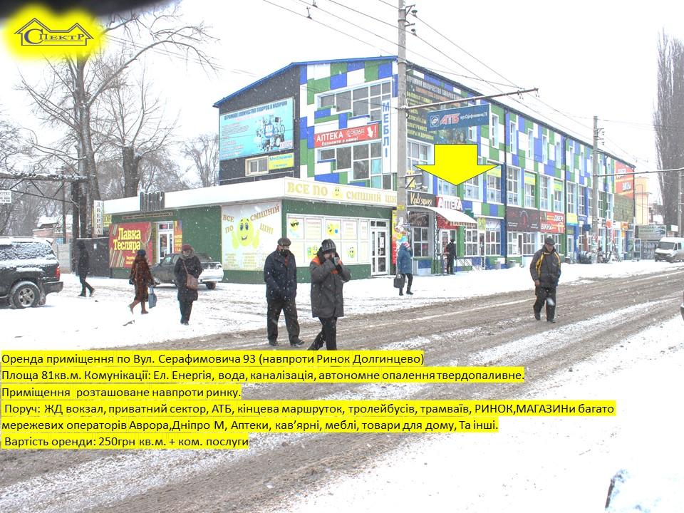 Оренда приміщення по Вул. Серафимовича 93 (навпроти Ринок Долгинцево)