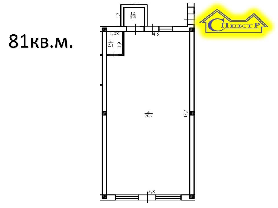 - Загальна площа: 81