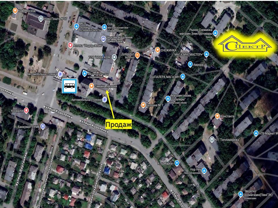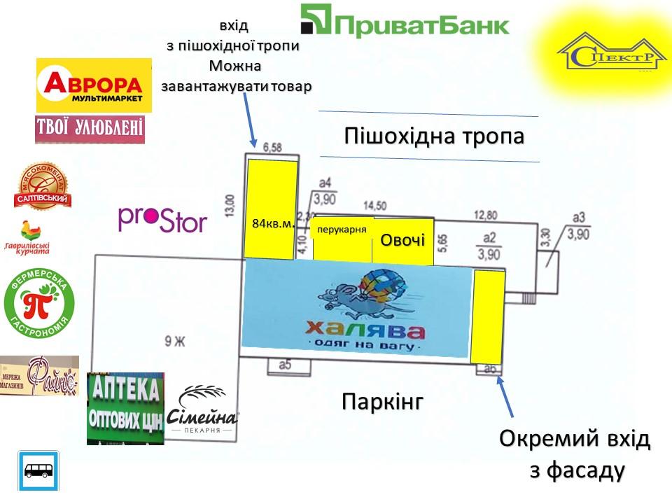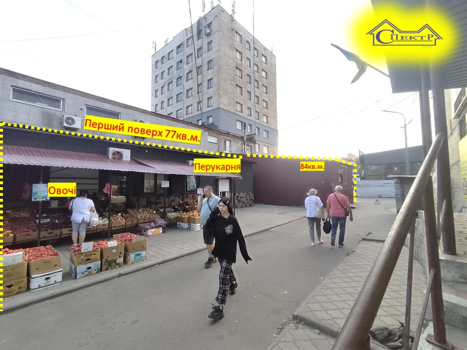Комунікації: эл. Енергія. 20квт, вода, каналізація. кондиціонери,вхід центральний та є вхід позаду будівлі для завантаження товару. Червона лінія. Паркінг. Поруч зупинка ,АТБ, Простор, Пекарня, Аптека, Банк,ринок і інші. Хороша видимість з проїжджої частини. Високий пішохідний трафік.Постійно висока концентрація людей.Оточення житлове, щільність населення висока. Добре підійде під торгівлю, офіс, сферу послуг, склад, секцію ,школу,та інше. Вартість продажу :90000$