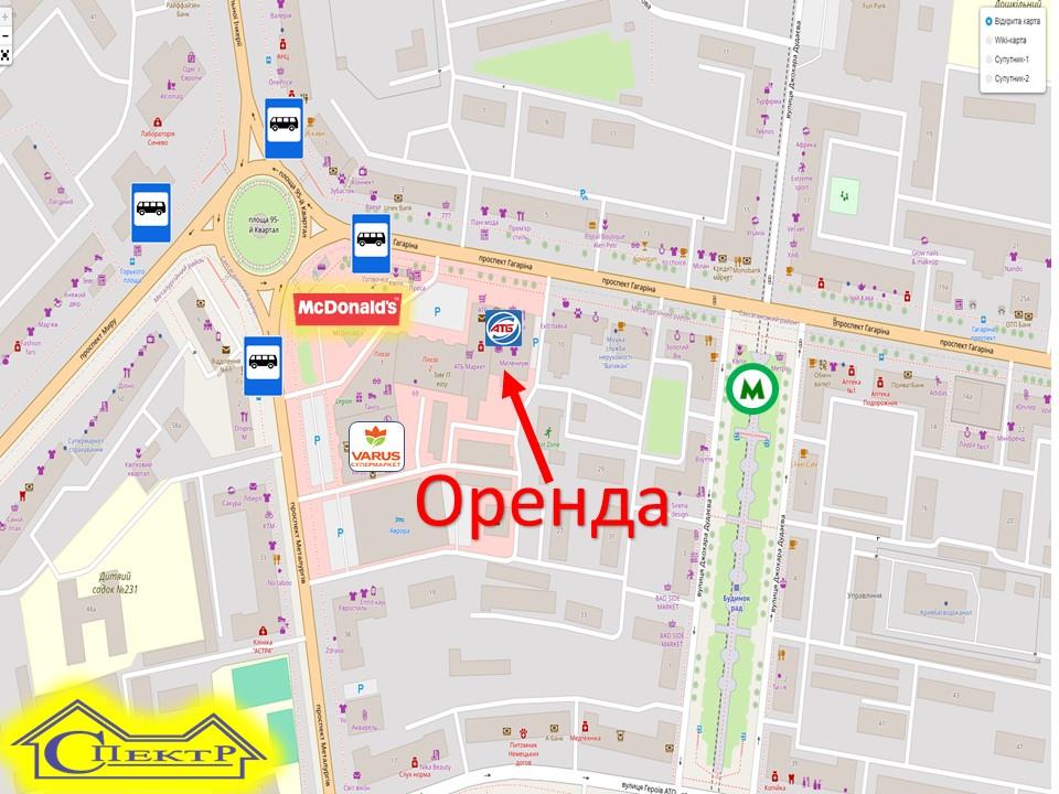 Поруч Макдональдс, супермаркети Varus, АТБ та інші. Вартість оренди: 14000 грн. + ком. послуги.