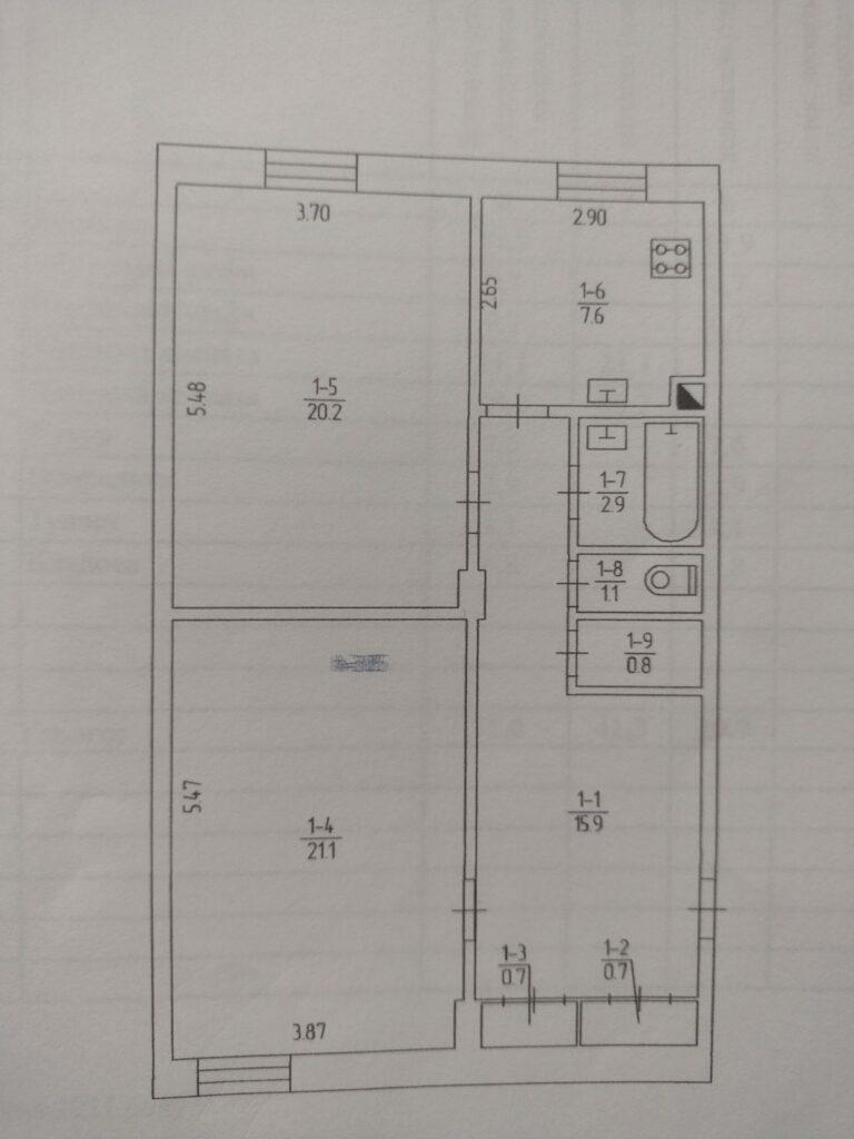2-кімнатна квартира 2й поверх 5ти поверхового цегляного будинку по вул.Січеславська25, Покровський район, м. Кривий Ріг, Дніпропетровська область. Загальна площа-71,0 кв.м, житлова-41. 3кв.м, (20.2\21.1), Н-3.45м, кухня-7.6кв.м, коридор-15.9кв.м, ванна-2.9кв.м, туалет-1.1кв.м, комори-0.8\0.7\0.7кв.м, є балкон зас. Квартира двостороння, не кутова, кімнати роздільні, вікна-мп, труби-мп, підлога дерев’яна, перекриття-бетонне, лічильники: на газ, воду, світло (день-ніч) у житловому стані. Одне вікно виходить на червону лінію, вікно кухні та балкон виходять у двір.